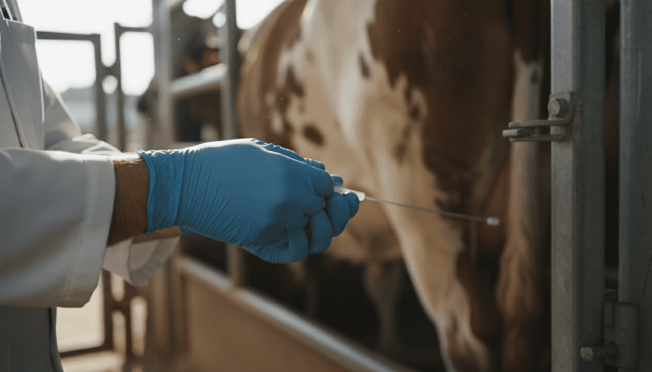 Prélèvement précis sur des vaches à haute valeur génétique, réalisé dans des conditions contrôlées.